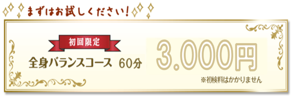 首、肩、腰、ひざの痛み…あきらめないで下さい! 当店の施術は、機械を一切使わず「手」のみで全身の筋肉をやわらげる事で 神経を刺激して「からだ」を改善します。 痛みを軽減させる事で精神的ストレスがとれ、脳に安らかな信号が送られて、 「こころ」を快適にする。これが心とからだのサポート整体です。